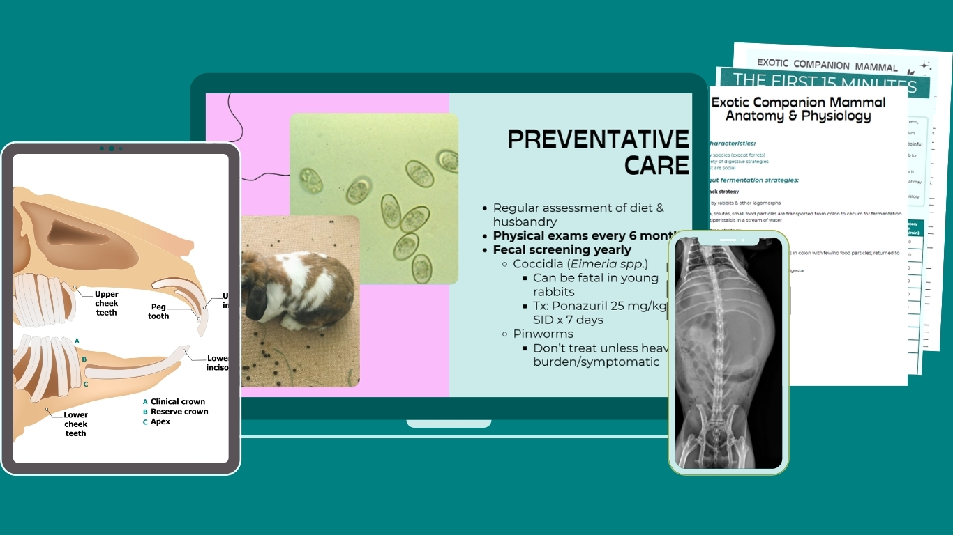 consisting of short, digestible lessons covering the clinically relevant information you need to start seeing exotic companion mammals in your practice today.